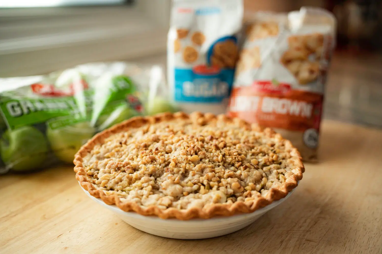 Prepare Streusel: In medium bowl, combine flour, brown sugar and salt. With fingertips, work in butter until pea-sized crumbs form; stir in walnuts. Freeze streusel 15 minutes.