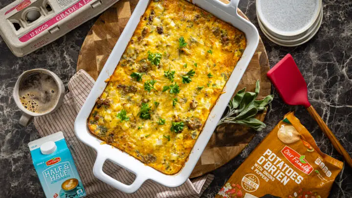 Easy to make and even better to eat, this breakfast casserole will please the whole family. It’s packed with sausage, potatoes and lots of flavor!