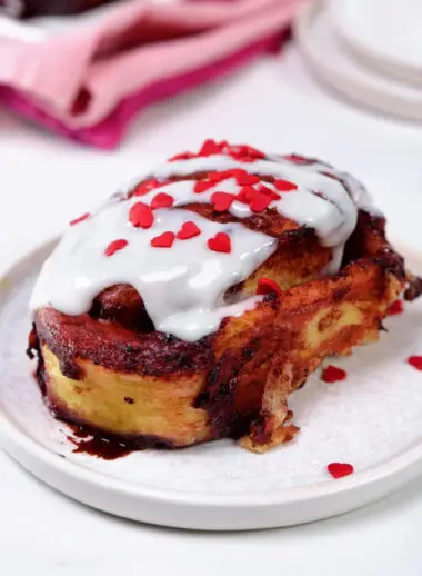 Combine the classic flavors of red velvet cake and cinnamon rolls in this easy-to-make recipe. With a rich cocoa-infused dough and a sweet cream cheese icing, these rolls are a decadent addition to your Valentine’s Day breakfast or brunch.