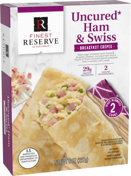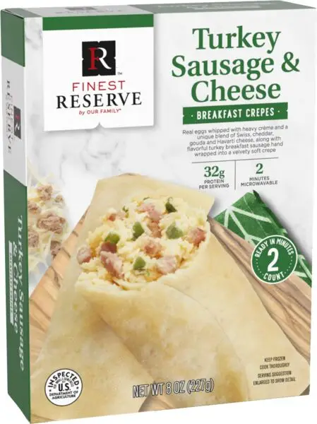 Wake up to a world of delicious flavor. Introducing new Finest Reserve breakfast selections! Treat yourself to the rich taste of Finest Reserves Crepes in three unforgettable varieties- Ham and Cheese, Turkey Sausage, and Spinach, Bacon and Cheese! For indulgence on-the-go, enjoy delicious omelet bites in Ham and Swiss or Bacon and Cheddar!
