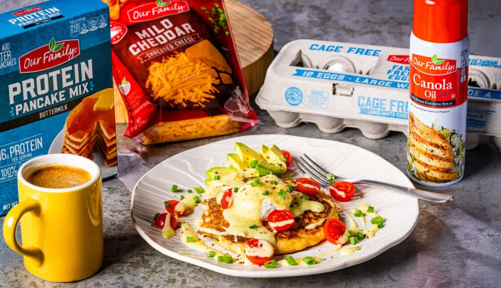 Poached Egg-Topped Savory Protein Pancakes