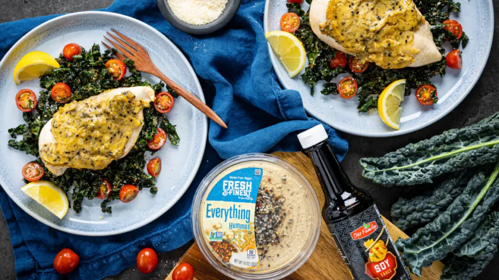 Everything Hummus-Crusted Chicken & Kale Salad