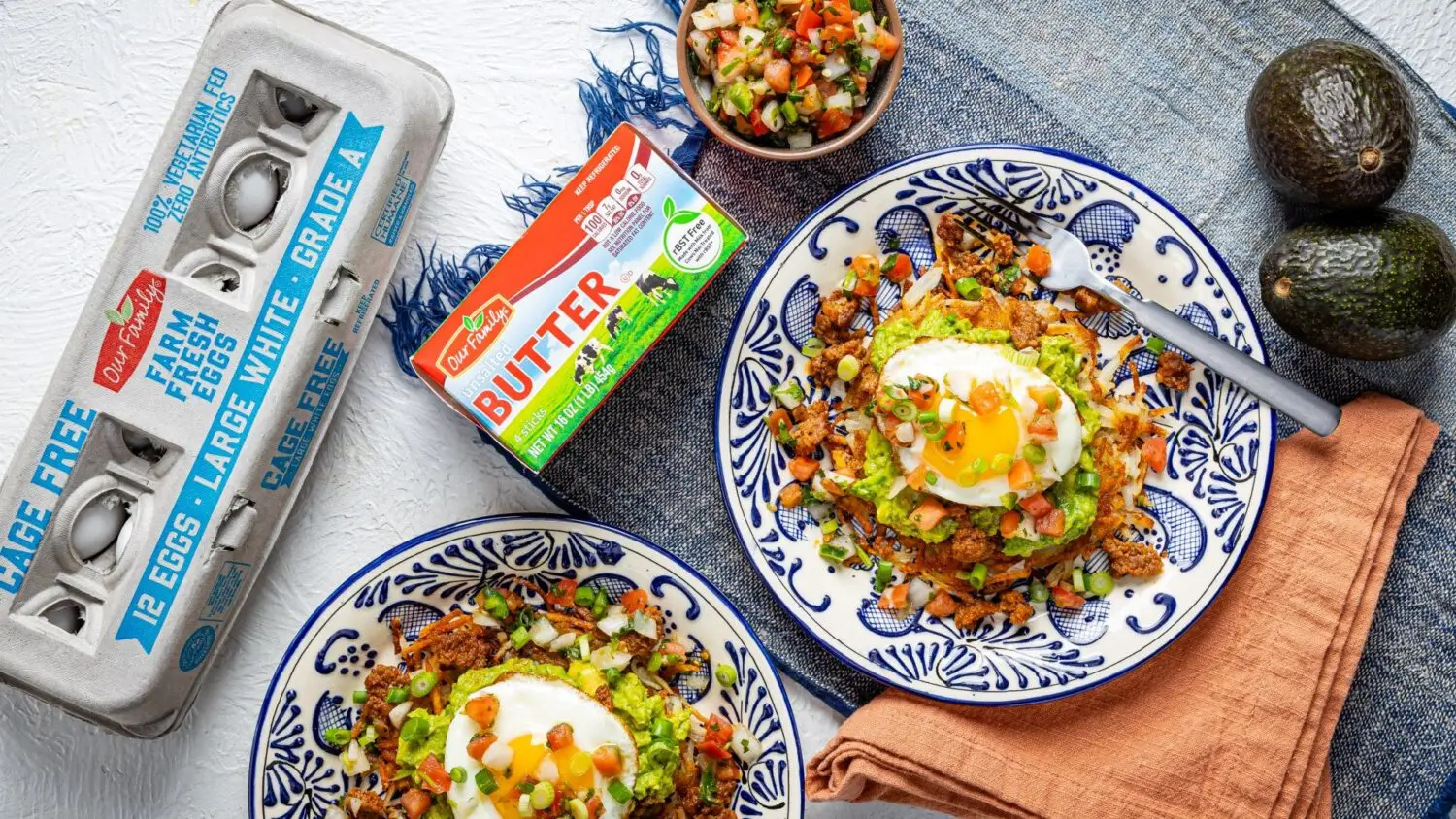 Approximate nutritional values per serving (1 avocado toast ): 691 Calories, 52g Fat, 20g Saturated Fat, 285mg Cholesterol, 1419mg Sodium, 40g Carbohydrates, 10g Fiber, 3g Sugars, 0g Added Sugars, 20g Protein
