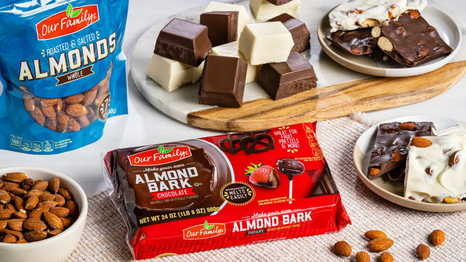 1 (16 oz) package Our Family® Chocolate or Vanilla Almond Bark