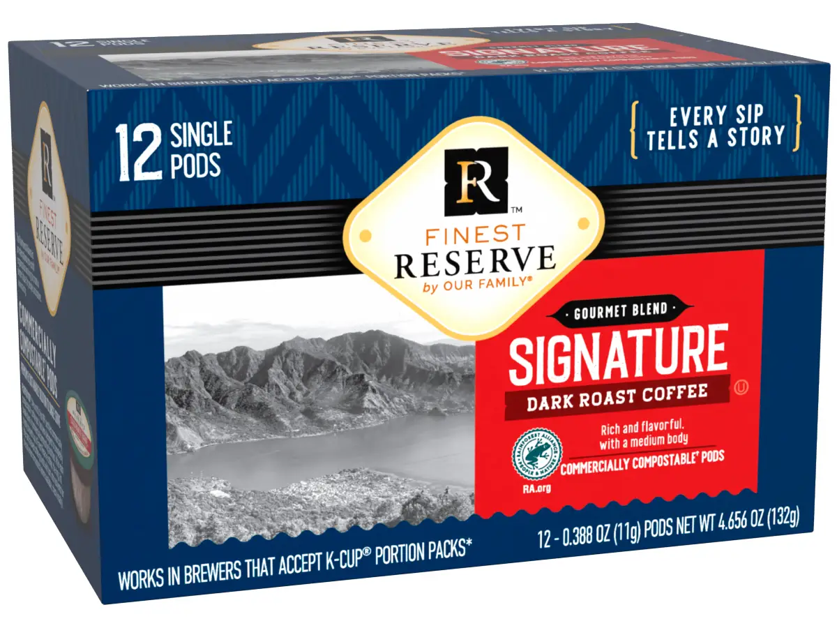 Finest Reserve by Our Family is passionate about food, crafting innovative new flavors that take the tastes you love to a whole new level. Our curated selection of foods was created to engage all your senses with authentic flavors and a fresh take on the finest ingredients, turning every bite into an experience to be remembered. Finest Reserve is introducing 10 premium coffees including, 5 unique varieties available in grounds and pods. Each variety is single origin and Rainforest Alliance Certified. The authentic and sophisticated flavors originate from several countries including Brazil and Guatemala.