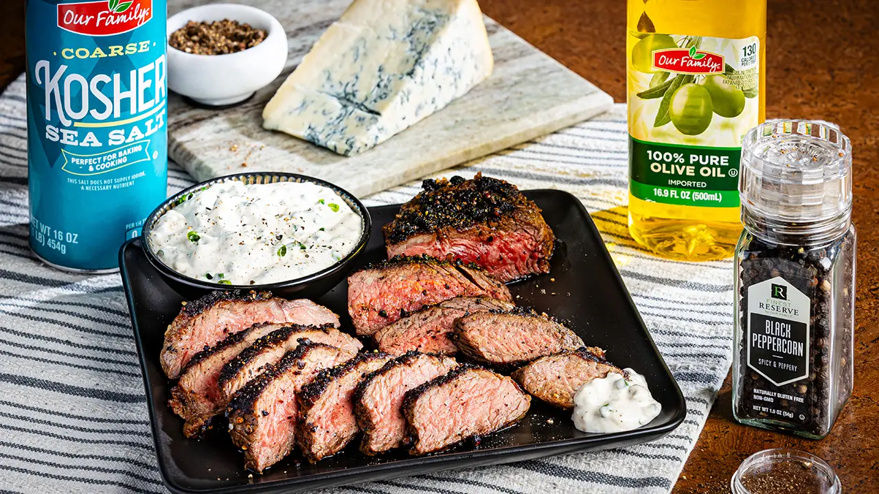 This top sirloin is coated in freshly cracked black pepper from Finest Reserve for a bold, aromatic crust. Seared to perfection, it locks in juicy, savory flavor with every bite. A simple yet elevated cut that brings steakhouse quality to your plate.