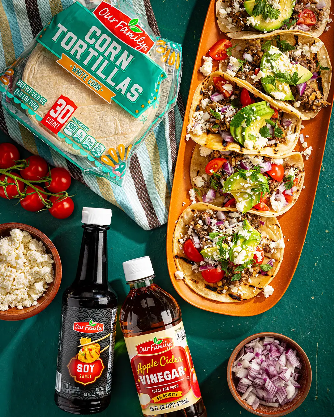 Approximate nutritional values per serving (2 tacos): 503 Calories, 35g Fat, 7g Saturated Fat, 21mg Cholesterol, 397mg Sodium, 37g Carbohydrates, 9g Fiber, 8g Sugars, 0g Added Sugars, 15g Protein