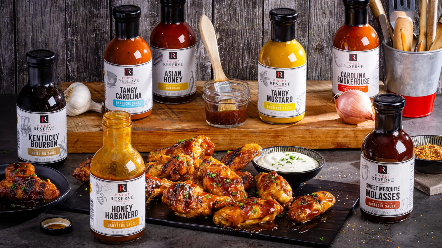 Approximate nutritional values per serving (4 wings, 2 tablespoons barbecue sauce): 465 Calories, 23g Fat, 7g Saturated Fat, 178mg Cholesterol, 1770mg Sodium, 30g Carbohydrates, 0g Fiber, 25g Sugars, 23g Added Sugars, 30g Protein