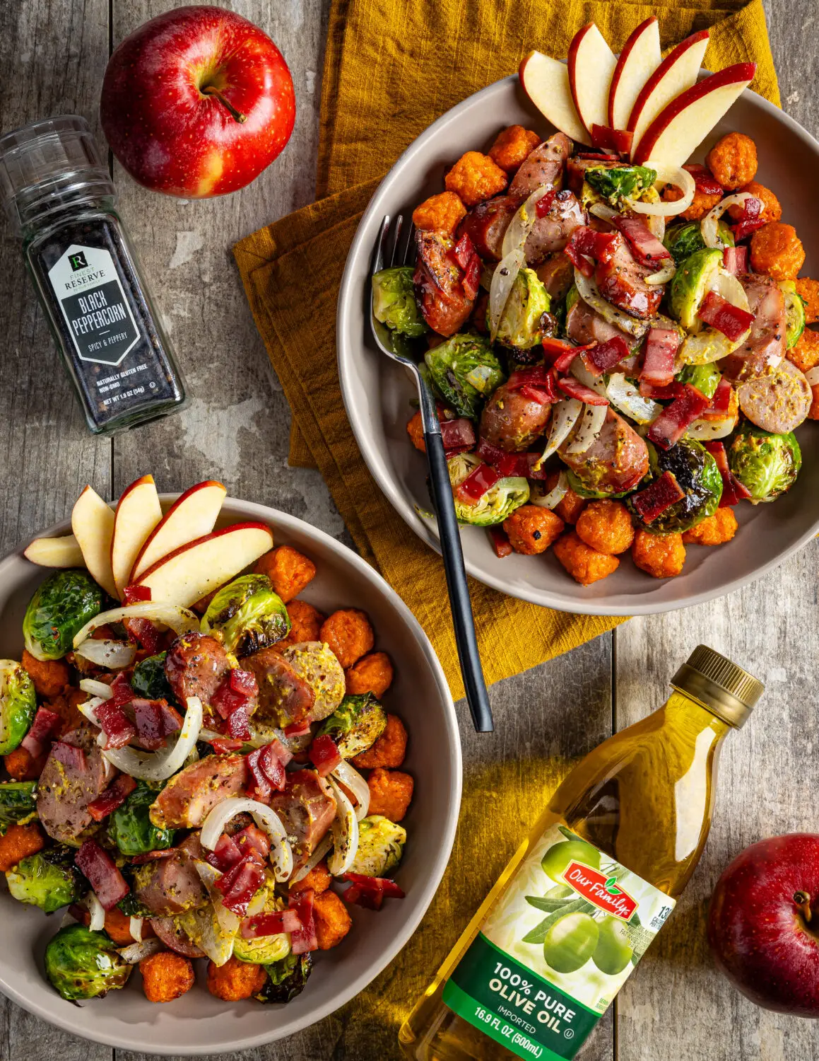 Our Oktoberfest Chicken Sausage and Sweet Potato Bowl is full of fall flavors! This recipe is the ideal recipe for a simple fall dinner for the family.