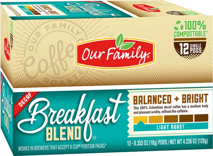 Our Family Single Serve Coffees Pods are now packaged using 100% compostable materials*, so you don’t have to choose between a convenient cup of coffee and being kind to the environment. Crafted from renewable plant sources and Certified Compostable by BPI, Our Family’s Single Serve Coffee Pods are better for the environment than traditional single-use plastic pods.