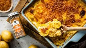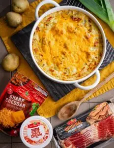 Cheddar, Sour Cream & Leek Mashed Potato Casserole