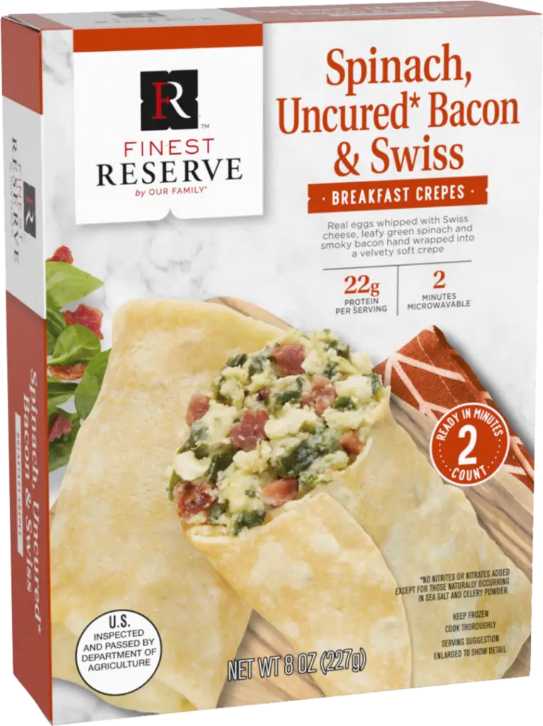 Spinach, Uncured Bacon & Swiss Breakfast Crepe