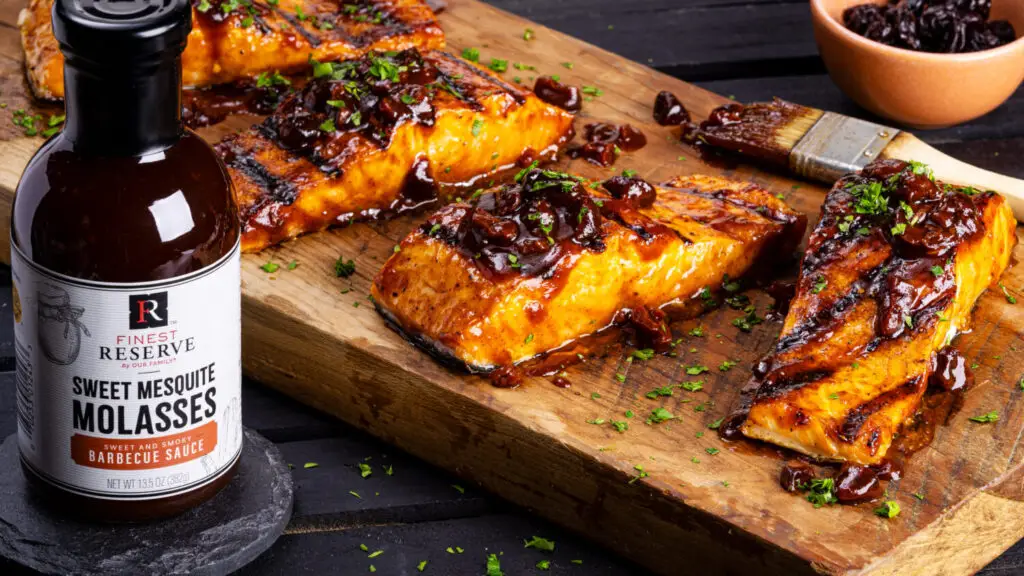 Sweet Mesquite Molasses BBQ Dried Cherry Grilled Salmon